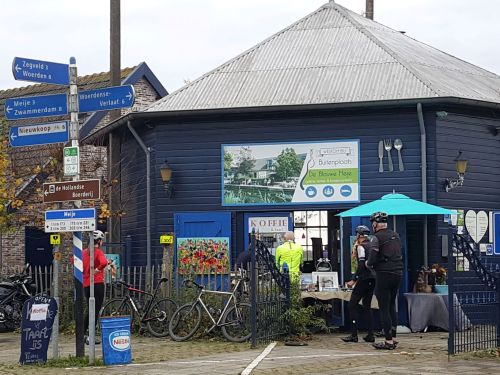 Nog net geen Zoetermeer komen we langs geitenboerderij Geertje. In verband met de corona moet ook hier het restaurant dicht blijven. Wij gaan niet kijken of ze coffee to go hebben. Overigens is het ook maandag, een dag dat horecazaken sowieso veelal dicht zijn. Wij hebben koffie en brood mee van huis.