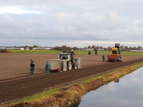 Links en rechts van de Zwartelaan zijn bloembollenvelden. Het is nu niet de tijd van bloemen kijken. Wel worden hier en daar met grote machines bollen gepoot. Komend voorjaar moeten de hyacinten, tulpen en narcissen weer in volle glorie in bloei staan. Bij Loosterweg Noord komen we langs de achterkant van de Keukenhof.