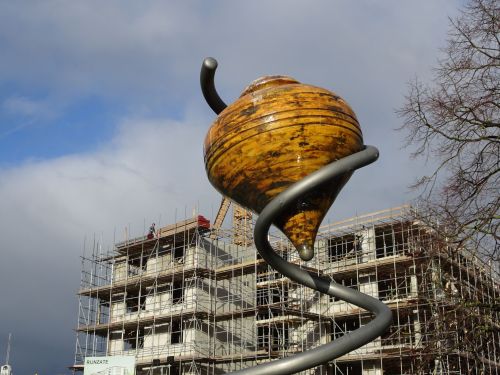 Anderhalve week geleden wandelden Piet en ik ook in Rotterdam. We kwamen op het Marconiplein. Nu komen we hier ook. We lopen een andere route naar Station Rotterdam Centraal. Een wandelpad over een vroegere spoorlijn loopt langs de west- en noordrand van de wijk Spangen. Hier staat ook het Kasteel, het stadion van Sparta.