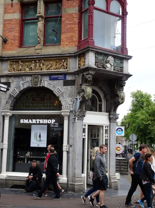 Het Damrak is de laatste jaren opgeknapt. Aan deze entree van de binnenstad is opnieuw bestraat. Allerlei uitbouwsels en vlaggen zijn weggehaald. We steken de Dam over.