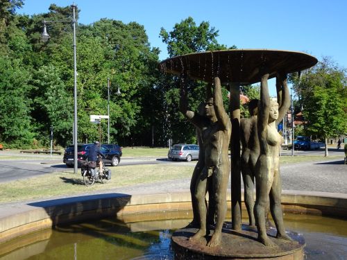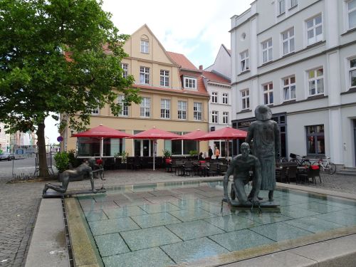 Bij Stralsund zijn we van Rügen af. We gaan over de oude brug. De meeste fietsers zullen kiezen voor het fietspont een stukje verder weg. Tussen onze brug en de vaarroute van het pont is een erg hoge brug gemaakt. Deze brug voor auto’s gaat op grote hoogte over de bebouwing de stad in. De Alte Markt in Stralsund is voor ons een pauzemoment.