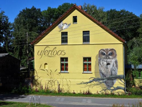 Gisteravond spraken we af om vandaag even de Oder over te steken om dan in Polen een ontbijtje te scoren. Als snel blijkt vanmorgen dat je vanaf Künstin-Kietz alleen per spoor of via de autosnelweg over de grens kan. Daarom vervolgen wij de rustige weg op de hoogwaterbeschermingsdijk van de Oder. We zien een haas maken dat hij weg komt. Andere dagen zagen we meer hazen, en ook een keer een ree en een slang. We fietsen onder een strakblauwe hemel.