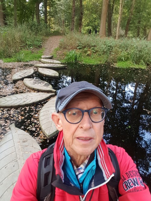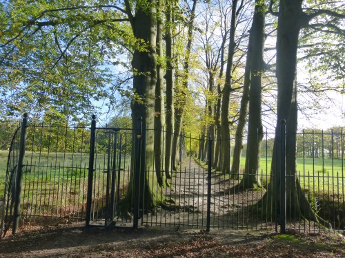 Het natuurgebied hier verlaat ik door een tourniquet in een stevig hekwerk. Dikke mensen en mensen met wandelwagentjes, of iets dergelijks, kunnen er niet door. Ik frommel eerst mijn rugtas naar de andere kant. Daarna houd ik mijn adem in en sta even later aan de andere zijde van het hek. Vandaag wandel ik veel op zandpaden, dikwijls omgeven met fraaie bomen, zoals beuken en eiken.