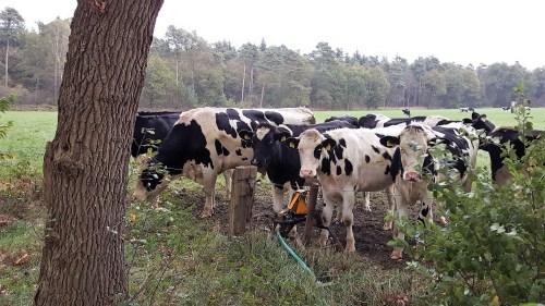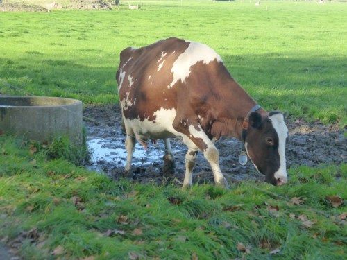 Bij een boerderij is een Rustpunt. De boer en zijn vrouw zitten hier met hun stagiair aan de koffie. De boer heeft zo’n 160 stuks vee. Het boerenbedrijf heeft twee locaties. Hier bij de boerderij van de vader staat het jonge vee, bij zijn zoon staat het melkvee. De boer heeft geen mestproblemen. De mest kan hij allemaal uitrijden op zijn eigen weiden. Wel zal hij het aantal koeien iets moeten verminderen.