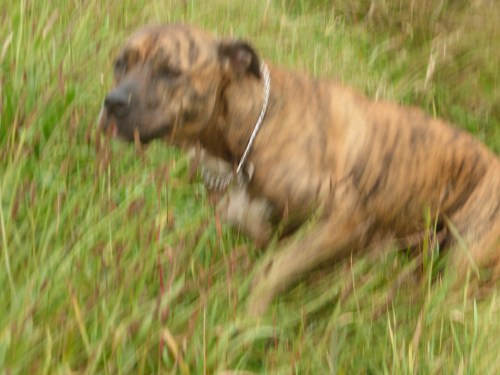 Hond in het water. Dorpen kom ik vandaag niet tegen. Een meisje van een jaar of 15 passeert mij op haar fiets en een hond aan de lijn. Even verderop maakt ze de hond los. Het beest springt in de natte greppel, loopt of zwemt daar een stukje en komt daarna kletsnat weer het pad op.