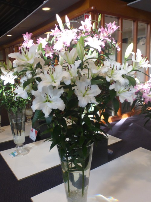 Een stuk fietsen we op een dijkweg langs de Lek. Bij Groot-Ammers zien we een verwijzing naar een lunchzaak. Rechtsaf en daarna linksaf. Er is hier een klein winkelcentrum. Het lunchzaakje is nog niet open. Geen koffie in dit dorp? Vlakbij is een bakkerswinkel. We gluren naar binnen. Er staat een tafel met twee stoelen. Dan kan je hier koffie drinken. Althans dat denken wij. We nemen plaats aan de kleine tafel.