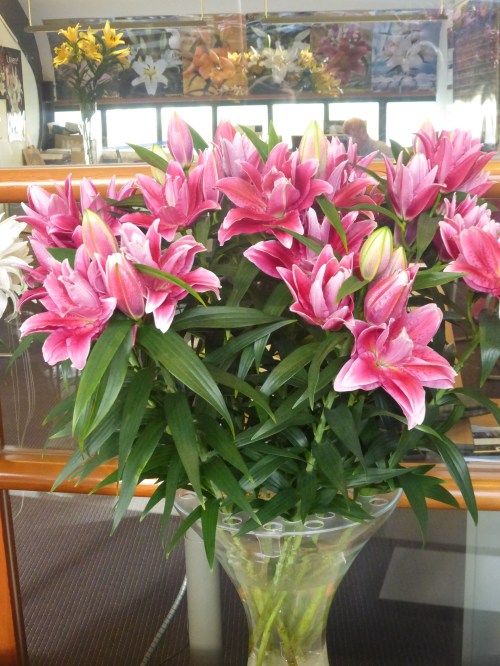 Als we aan de beurt zijn bestelt Piet twee koppen koffie. De bakkersdame vertelt ons dat ze helaas geen koffie schenken. Ik doe de mevrouw een voorstel. Wij drinken hier koffie uit onze eigen thermosflessen en kopen daar een appelgebakje bij. Ze vind het goed en vraagt of we lege kopjes nodig hebben. Ze heeft er achter een paar staan. Dat vinden we niet nodig.