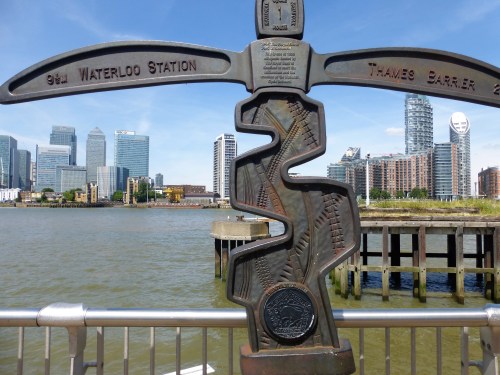 We rijden een heel stuk over een fietsroute langs de Theems. Op bepaalde stukken is het fietspad in prima staat op andere stukken van het fietspad zijn van mindere kwaliteit en smaller. Aan de overkant van de rivier staan indrukwekkende gebouwen. Aan de kant waar wij fietsen wordt nog veel gebouwd. We zien een kabelbaan hoog over de Theems, en het Millennium Dome. Het ziet er allemaal indrukwekkend uit.