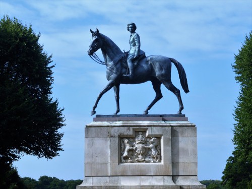 We fietsen op deze rustige zondagmorgen door het Windson Park. Dit park is van het Brits koninklijk huis. Er lopen hier en daar groepen herten. Groepjes dagjesmensen komen we in het park tegen. Er staat een groot standbeeld van Elisabeth II, de huidige koningin, te paard. Er is hier een lange roeibaan te vergelijken met die in het Amsterdamse Bos.
