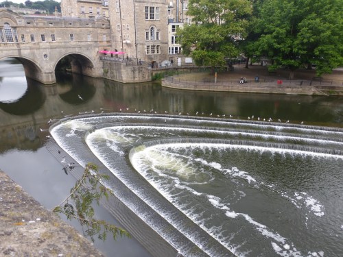Weer gaan we vandaag eerst een stuk langs een kanaal. Het is erg stoffig en uitgroeiende bramenstruiken en brandnetels doen niet altijd vriendelijk aan. We komen over twee aquaducten. Dit zijn ongelijkvloerse kruisingen van kanalen. Bath is onze eerste stad. Hier gaan we aan de koffie. In Bristol begint het te regenen. Het gaat over in een stortbui. We schuilen in een loods van DPD, een pakjestransportbedrijf.