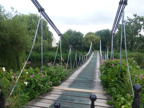 We gaan een water over met een klein pontje type groot uitgevallen roeiboot. De fietsen worden door de bootsman in de boot getild. Onze camping staat in Chertsey. Het dorp, twee kilometer verderop ziet er niet aantrekkelijk uit. Daarom eten we bij The Kingfisher (het ijsvogeltje), een restaurant over de brug bij de camping. Het is er flink druk. Dat is altijd een goed teken.